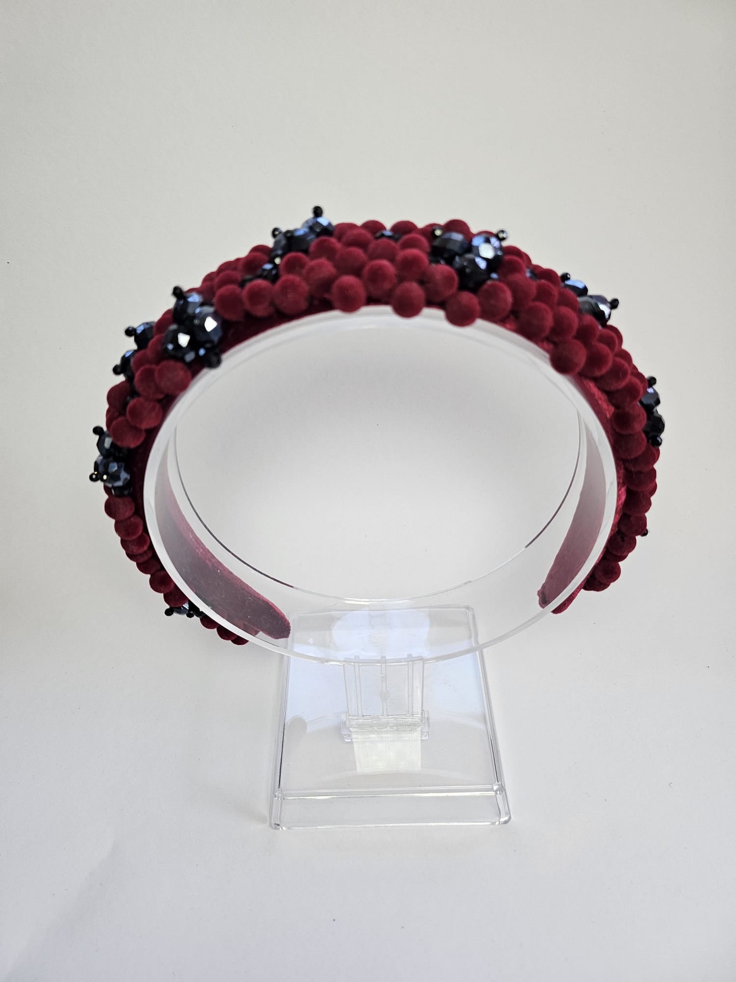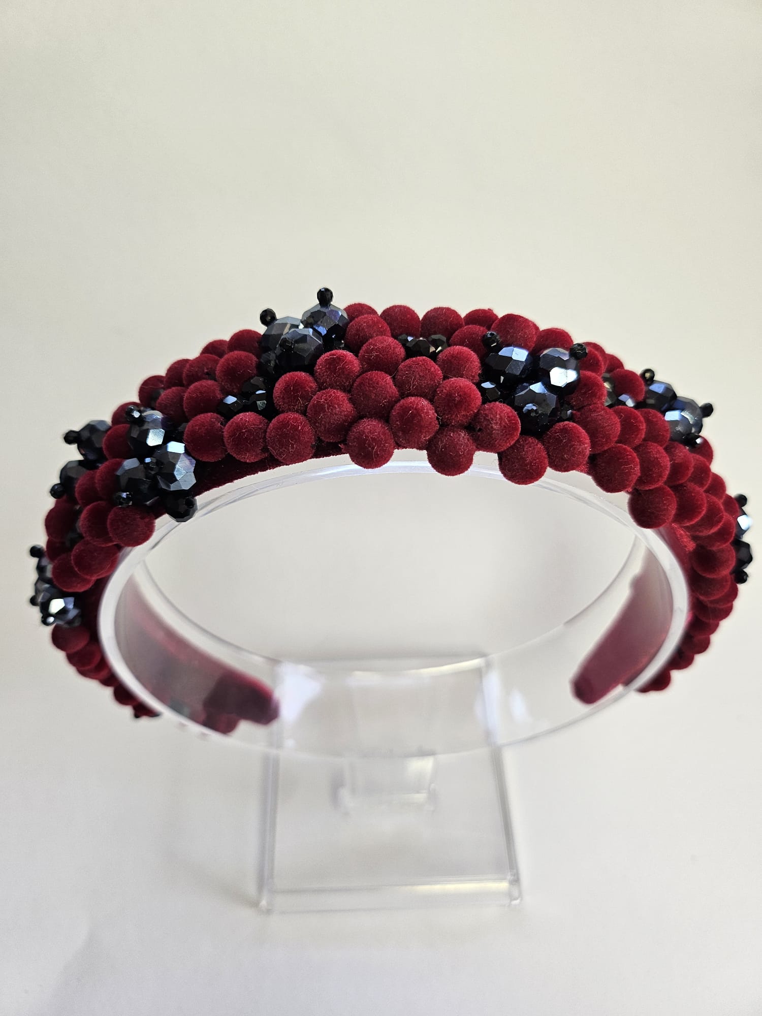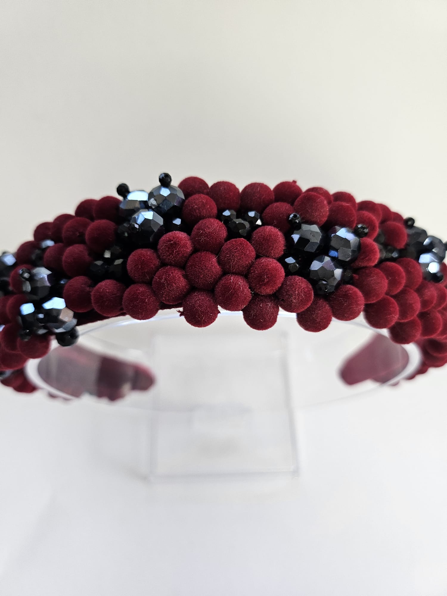 Adaugă un aer sofisticat și misterios coafurii tale cu această cordeluță lată unicat, realizată manual, care combină cristale negre și visinii cu mărgele delicate din catifea. Dimensiunea de 3–5 cm și designul original o fac potrivită pentru orice tip de coafură, oferind un efect elegant și plin de personalitate, ideal atât pentru ținutele de zi, cât și pentru aparițiile de seară.